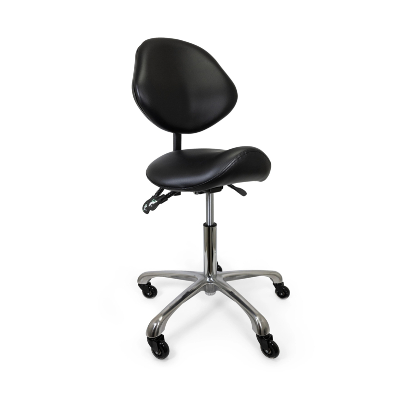 Kappersfiets Ergonomisch met RugleuningErgonomische zadelkruk met rugleuning en 3 functies: kantelfunctie, verstelbare hoogte en één vergrendelingsstand voor de zitting.