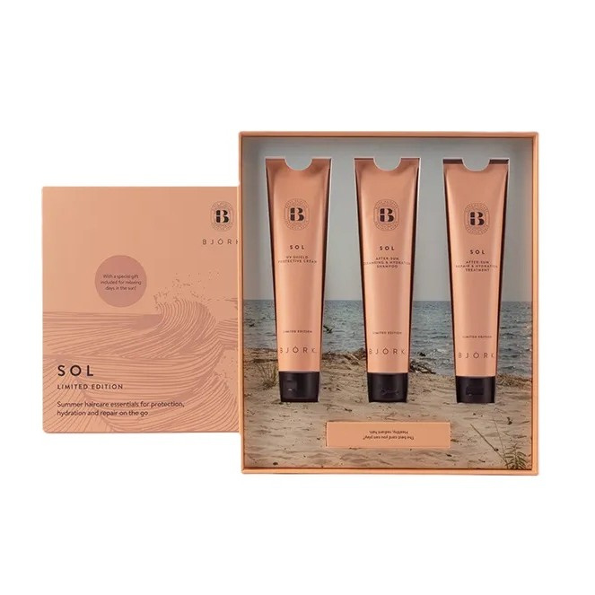 Björk Sol Limited Edition Summer Haircare SetSOL After-Sun Hair Ritual: De zomerse haarverzorgingsset – bescherm, hydrateer en voed, waar je ook bent.